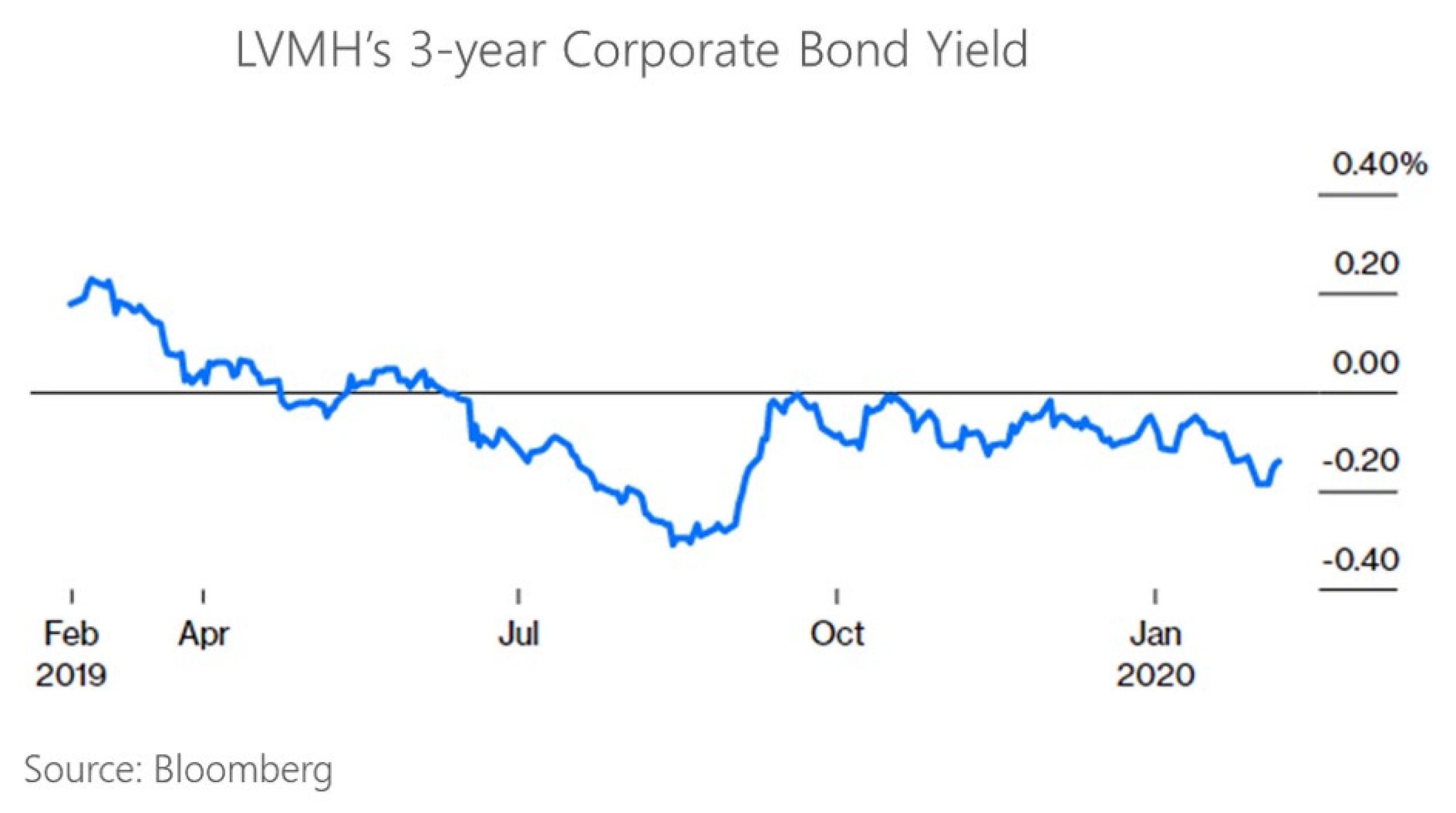 Whereas our previous calculation (see our December 2019 comment) assumed 0.5% cost of debt funding for the Tiffany acquisition, the first EUR 9.5bn (of EUR14.5bn acquisition cost) has been locked in at even better rates through ECB’s Corporate Sector Purchasing Program. The issuance announced this week consists of five tranches; two of which carry negative yields. Even the longest maturity, an 11-year bond, has a coupon of no more than 0.45%. All in, this is around half of the price LVMH was expecting to pay when the structure of the deal was first laid out late last year.