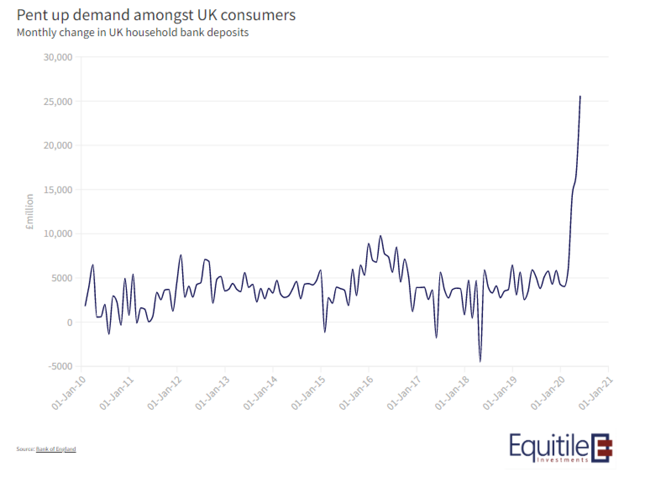 It can’t go on forever of course, Keynes’ so-called Paradox of Thrift can soon take hold. For now though, those left with an income have plenty of financial capacity to fulfil their pent-up demand.