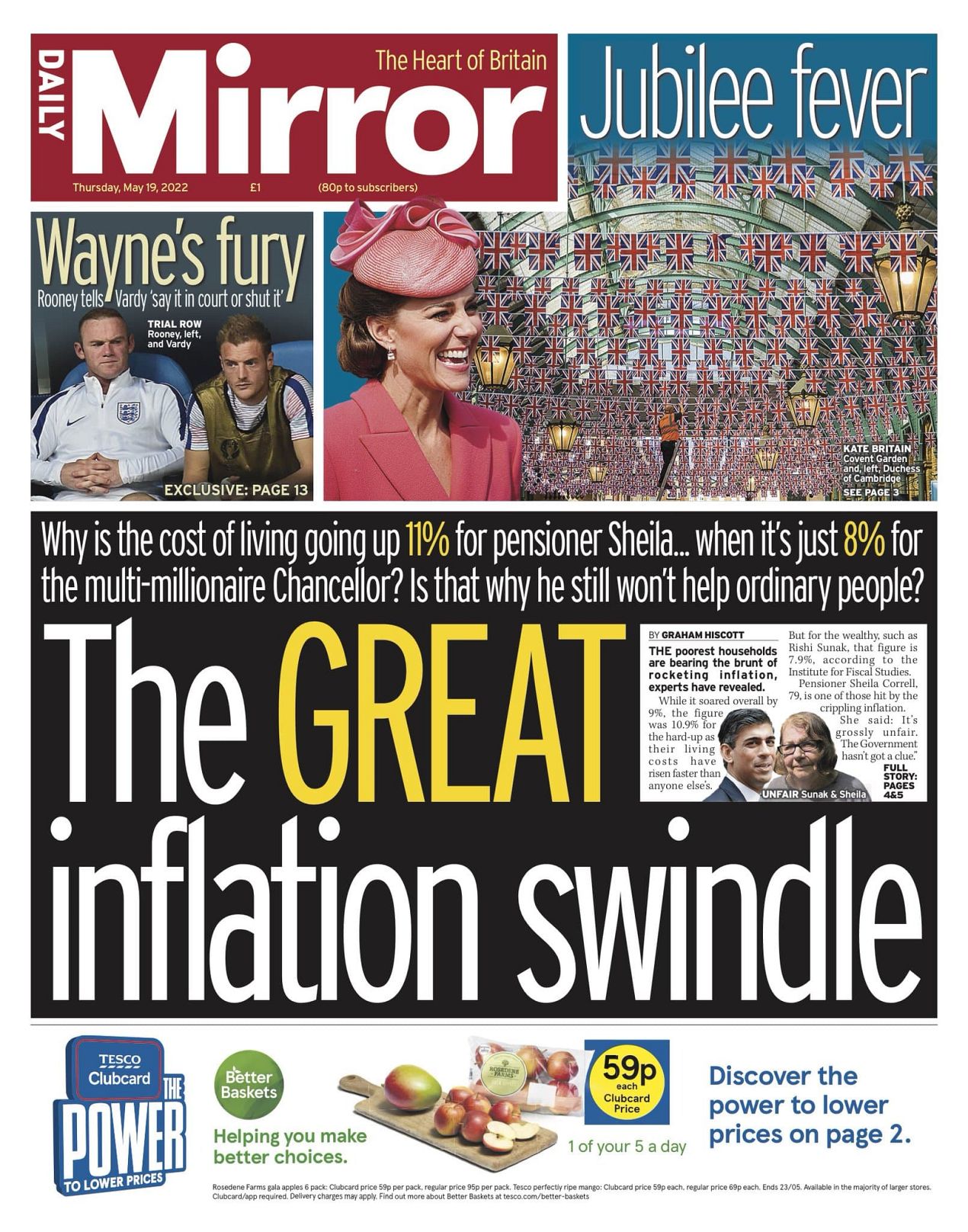 Below we show a randomly selected recent front page of the Daily Mirror with its current price of £1, more than 7 times greater than it should be, according to officially recorded inflation.